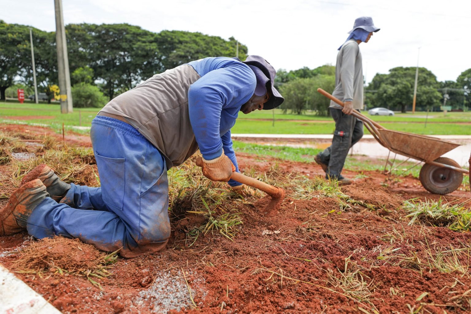 Começou nesta semana o plantio de mais de 2 mil metros de grama natural ao redor da bacia de detenção do Drenar DF, o maior programa de captação e escoamento de águas pluviais do Governo do Distrito Federal (GDF). Para que a fase de paisagismo seja iniciada, o terreno será preparado e adubado.