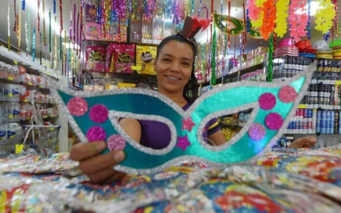 A loja preparou o estoque cedo. Logo que os adereços voltados ao réveillon foram retirados, as máscaras, fantasias e espumas tomaram conta das vitrines. “Como a gente trabalha no segmento de festas, comercializamos itens relacionados ao carnaval ao longo do ano inteiro, mas nessa época a gente dá uma impulsionada, claro”, afirma.