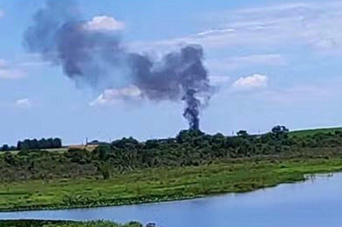 Um avião de pequeno porte caiu no município de Quadra (SP), neste sábado (15/2). Duas pessoas morreram carbonizadas.