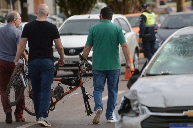 Edna Ferreira Alves, 33 anos, vendedora de flor na região, contou que a roda soltou da bicicleta e rolou para longe. “O ciclista tentou atravessar a pista no ponto que acaba a ciclovia. Havia um caminhão que tampava a visão da motorista do carro e do ciclista. Quando o ciclista conseguiu atravessar na frente do caminhão se deparou com o carro, sem dar tempo de reação para os dois”, relatou.