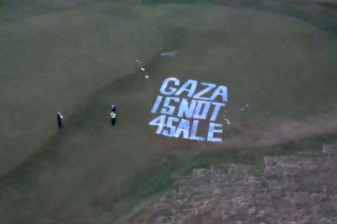 Um grupo de ativistas pró-Palestina, identificado como Ação Palestina, vandalizou um dos campos de golfe do presidente dos Estados Unidos, Donald Trump, localizado em Turnberry, na Escócia. A ação foi registrada e compartilhada pelo grupo nas redes sociais neste domingo (8/3).