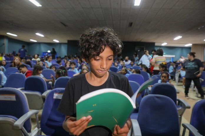 Nesta sexta-feira (25), os alunos da Escola Parque da 308 Sul tiveram um momento dedicado ao conhecimento cívico por meio do lançamento de uma nova versão do livro Gabriel em Brasília – Cidade com Asas, narrativa que abrange a educação patrimonial, conforme os planos de trabalho estabelecidos entre a Secretaria de Educação do Distrito Federal (SEEDF), o Instituto BRB e o Instituto do Patrimônio Histórico e Artístico Nacional (Iphan).
