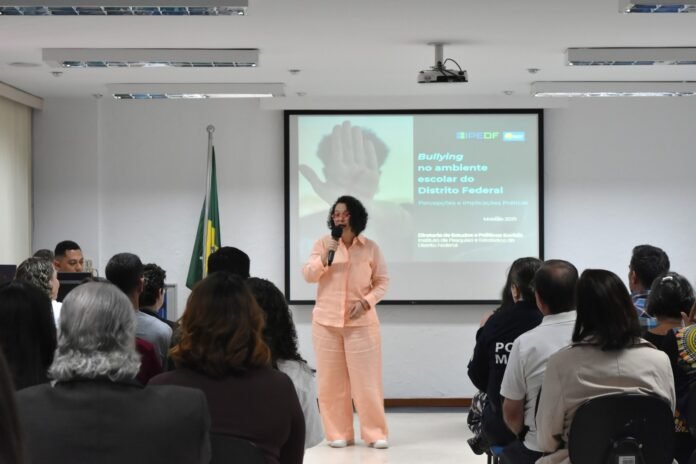 O Instituto de Pesquisa e Estatística do DF (IPEDF) divulgou, na manhã desta quarta-feira (21), a pesquisa Bullying no ambiente escolar do Distrito Federal: percepções e implicações práticas. O estudo mostra que, embora a violência escolar ainda seja um desafio importante no Distrito Federal, o cenário começou a mudar positivamente. A maioria das escolas tem investido em ações de enfrentamento ao bullying, com destaque para campanhas educativas e orientação familiar. O evento de lançamento contou com a presença de representantes das secretarias de Educação (SEEDF) e de Justiça e Cidadania (Sejus-DF), além do Batalhão de Policiamento Escolar da Polícia Militar do DF (BPEsc/PMDF) e do Conselho dos Direitos da Criança e do Adolescente (CDCA).