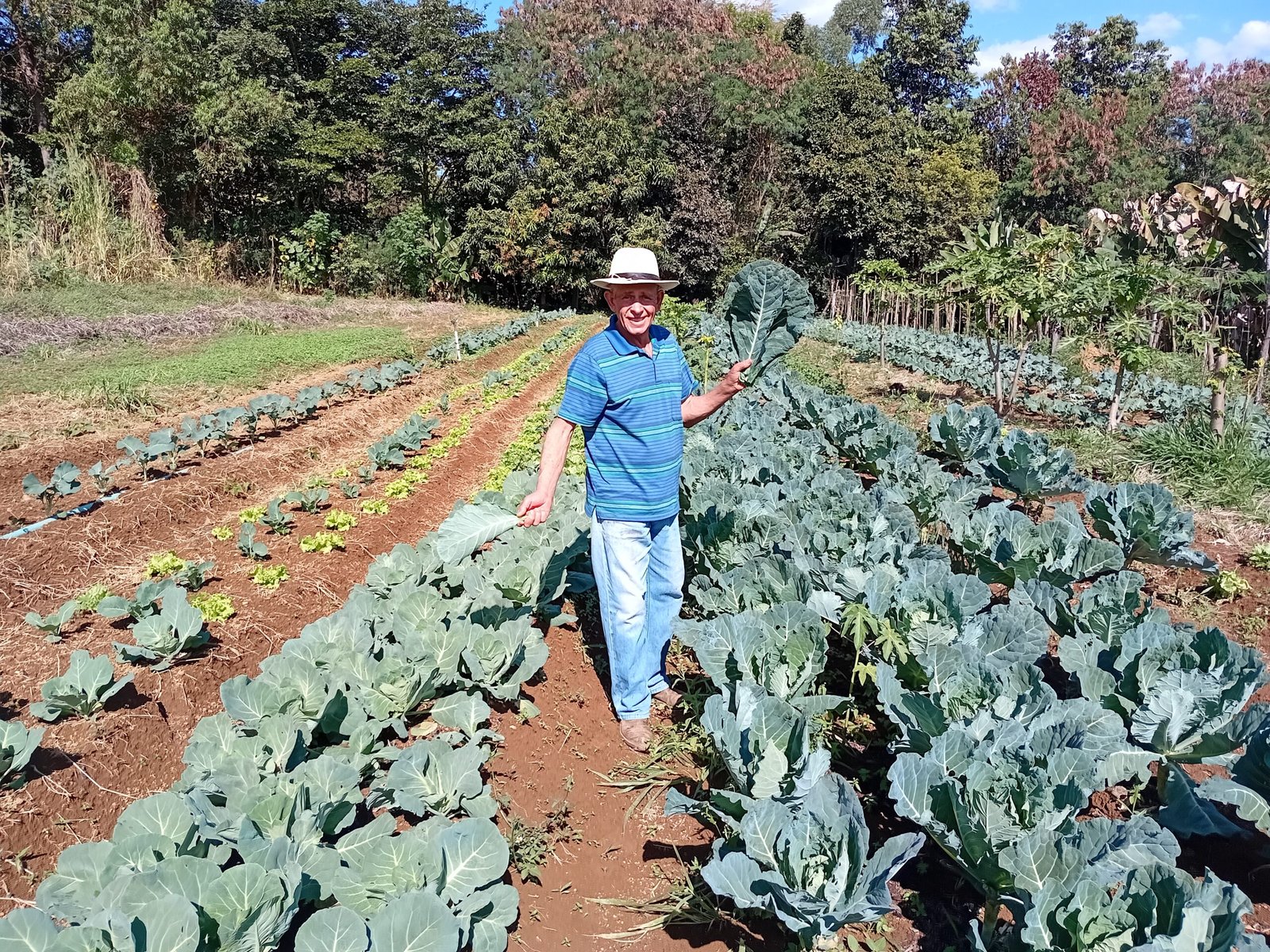 Proprietário do Sítio Vida Verde, Valdir trabalha com hortaliças e frutas em produção orgânica, ou seja, livre de agrotóxicos e insumos químicos. “Desde a década de 1990, sou atendido pela Emater-DF, que me faz visitas quase semanais, por meio do escritório na Ceilândia”, relata. Com apenas um funcionário e o irmão, ele planta banana, mamão, repolho, couve, brócolis, tomate, inhame, cebola e até açaí — por meio da Rota das Frutas.