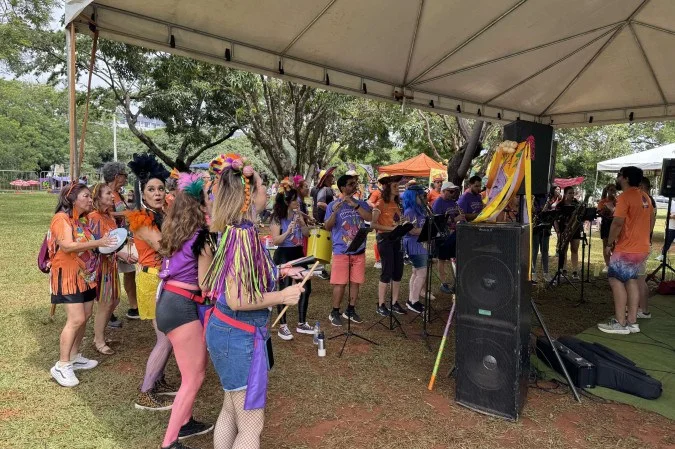 A rua também virou sala de aula com o bloco Cortando Cebola, formado por alunos da Escola Brasileira de Choro. O professor Júnior Viegas, 39, explica que a ideia é humanizar o ensino. “Aqui, o choro é só de alegria”. A psicóloga Camila Almeida, 42, aluna do grupo, reforça que a experiência transformou sua relação com a cidade. “Entrei na escola em 2024 e tocar numa banda é muito diferente de tocar sozinha. É muito legal conhecer pessoas de lugares diferentes”, relata.