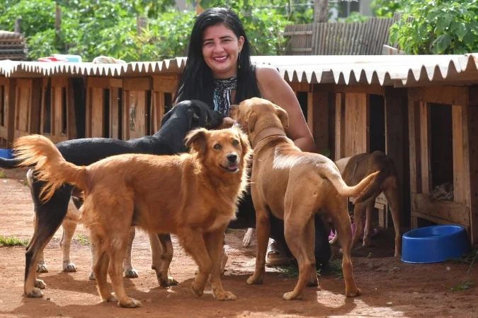 Em uma invasão em Ceilândia Norte, quem cuida de animais com vulnerabilidade é Amanda Martins, 36. Ela monitora cerca de 60 cães e nove gatos que chegaram ao espaço desnutridos e maltratados. A operadora de caixa, que luta para garantir alimentação a todos, ainda lida com a hostilidade local.